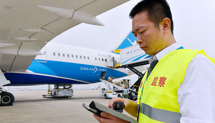 2.签派外场人员对重点航班和延误航班进行现场监察,发现保障环节中的问题,及时协调和调度,同时利用移动应用终端获取和录入各类详细信息和保障数据。贺晟 摄