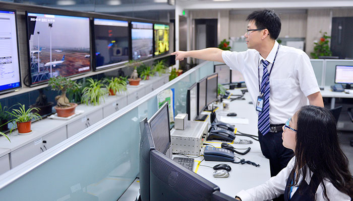 4、值班签派员通过机坪视频监控,能够迅速、直观地监控现场运行和保障动态,找出运行中的不足和难点,对于薄弱环节及时协调解决。贺晟 摄