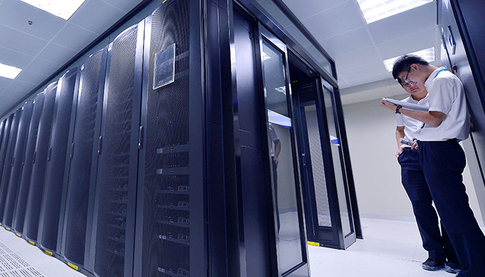1、智能监控虽说方便快捷,但人工交叉检查仍然是确定稳定安全的重要手段。图为系统维护师们根据安全生产月要求,对机房设备进行全面的维护检查,确保系统运行状态正常。贺晟 摄